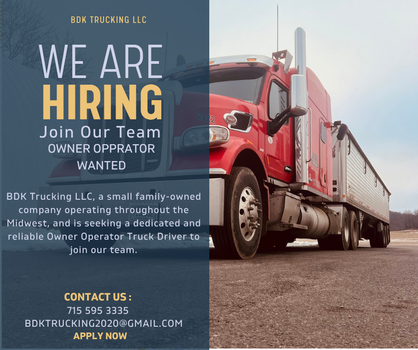 Looking for Owner Operators to pull Our Trailers hauling Non-haz Ag-Freight. Only Looking for individuals not companies or people with more than one truck....